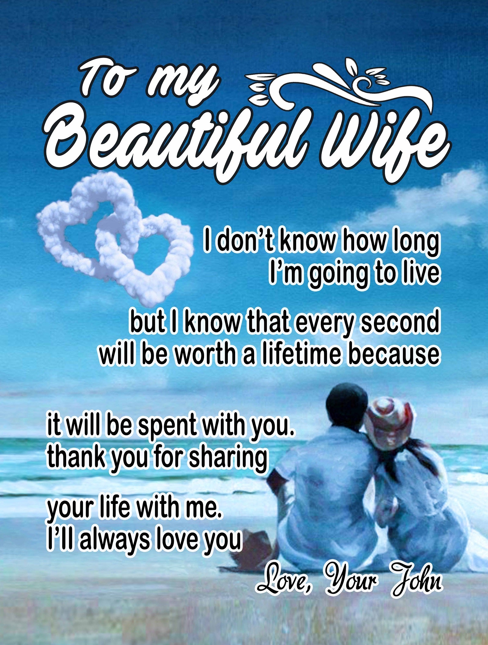 My beautiful wife, Never forget that I love you. If I could give