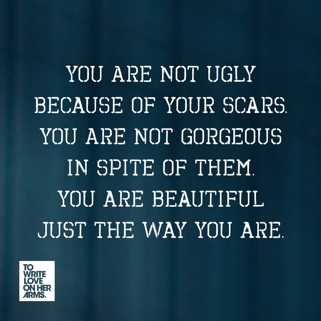 TWLOHA on X: “”You are not ugly because of your scars. You are not